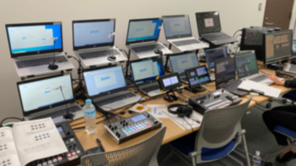Zoomミーティング、Microsoft TeamsなどのWeb会議ツールを使ったイベントやウェビナーにおけるPC、映像・音響機器の提供や技術者派遣を行います。